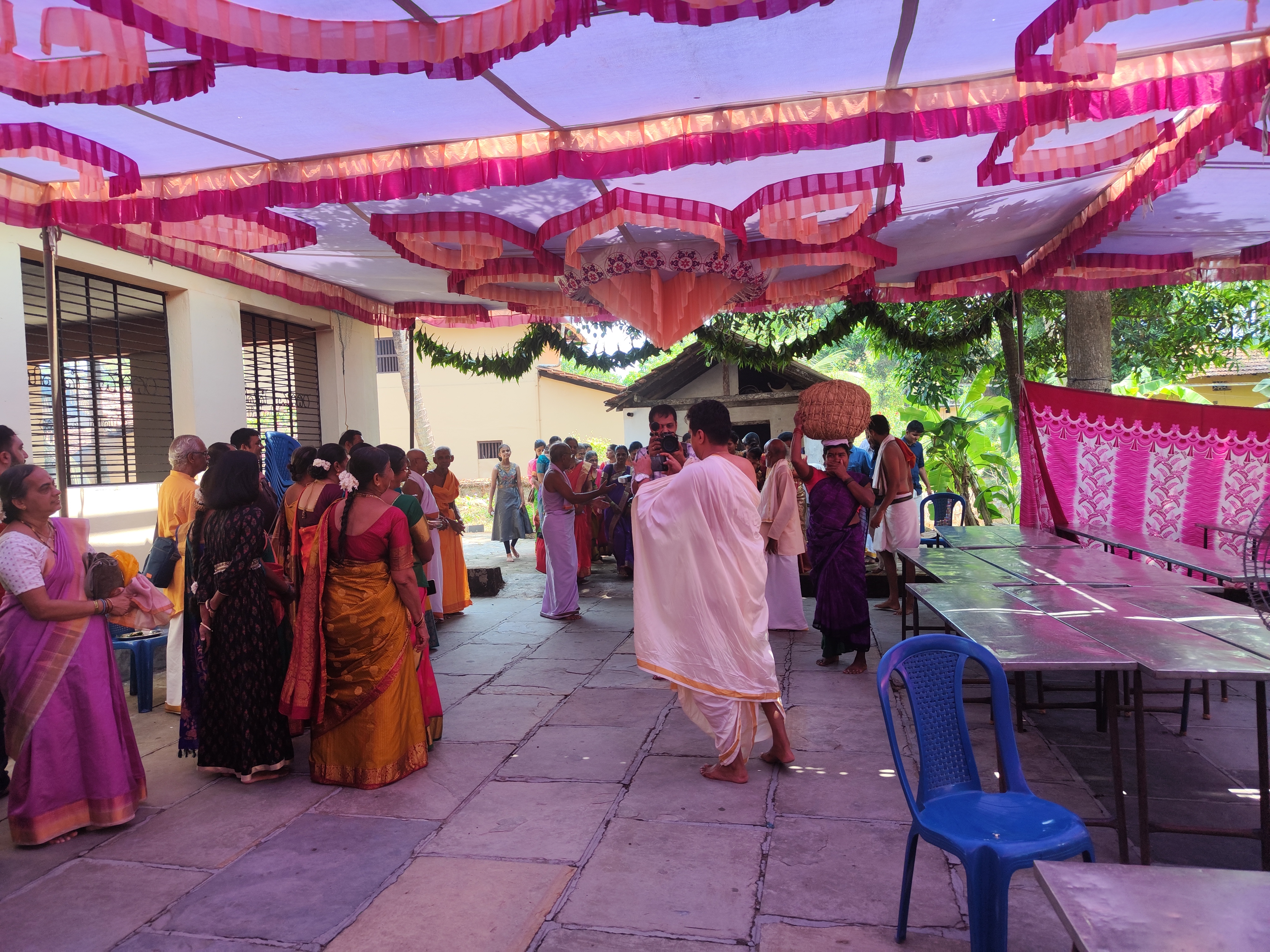 I feel fortunate to have the ability to travel freely and comfortably. On the evening of the 20th, I embarked on a memorable train journey to Bangalore, where I was set to attend the reception ceremony of my nephew, Vadiraj Bhat, at the Krishna Vadiraja Mandira in Shankarapura, Bangalore.